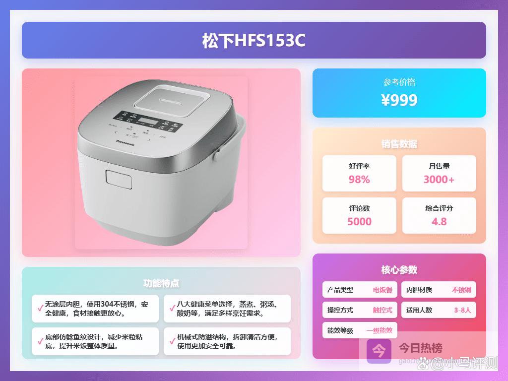 2026年哪种电饭锅更健康,推荐2026年热销型号一、松下亮点:无涂层不锈钢内胆、双IH快速加热、24小时长效保温