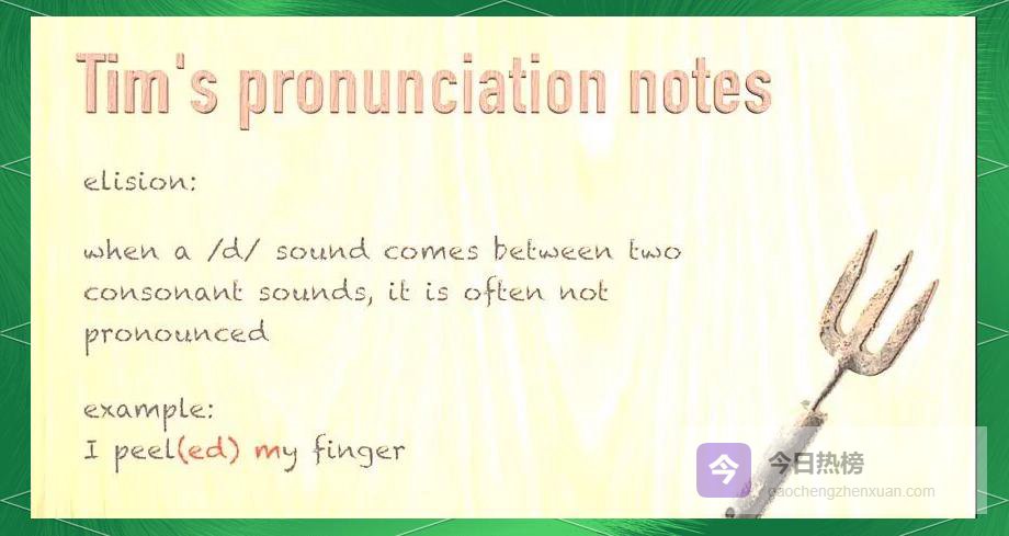 1.1 ❒ /d/ 被“省略”的场景当 一个 /d/ 夹在两个辅音中间 时,它常常直接“隐身”。