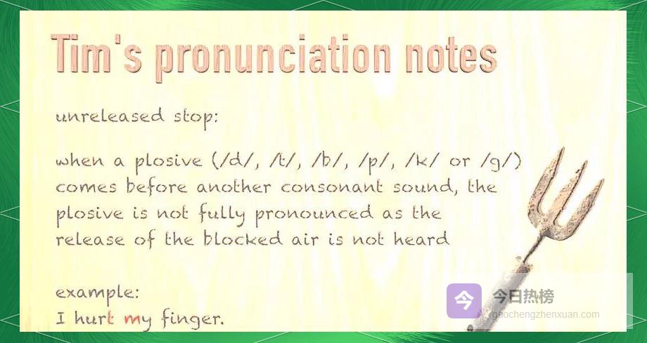 如果说省音是“偷走”辅音,那么失去爆破就是让爆破音“憋”在喉咙里。当 /p/、/b/、/t/、/d/、/k/、/g/ 遇到另一个辅音,它们会被“堵”在半路,只形成一股气流,却不爆破出声。
