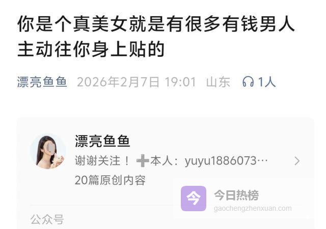 “世上富哥千千万 你不得挨个尝咸淡”“我是捞女呀,我不仅捞人还捞钱”“小孩姐才玩呢,成年人要勾引”“越是美女,越要当舔狗”…… 近日,网红博主“姚金鱼”在网络平台发布的视频内容被指擦边低俗,宣扬不良婚恋观博取流量,并开设“绿茶速成班”“魅魔速成班”,教“狐狸精三段式狩猎法”等有违公序良俗,让人不适。