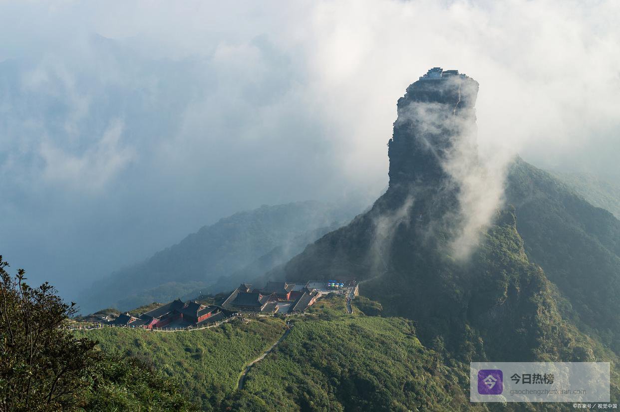 亲测梵净山的名气,配得上它的颜值!2018年就被列入世界自然遗产,作为武陵山脉的主峰,它在大地上突兀升起,像一根直通天际的天柱,气势磅礴。最绝的是山顶的“红云金顶”,被一道裂缝劈成两半,顶上还各建了一座庙,用天桥连着,要爬上去,得手脚并用拽着铁链子,我爬的时候手心全是汗,但登顶那一刻,所有疲惫都烟消云散。云雾起来的时候,站在金顶上看云海翻涌,真的会觉得这不是人间,是神仙开会的地方。而且这里是黔金丝猴唯一的家,这种猴子比大熊猫还稀有,我去了两次才有幸看到一只,能不能偶遇全凭缘分!✅ 6. 松桃红石林——火星同款的红色秘境