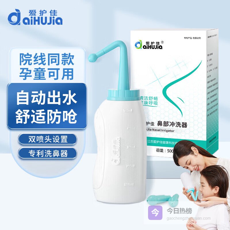 三、洗鼻护理:被忽视的呼吸健康关键✅ 夜间呼吸质量决定睡眠深度许多人不知道,鼻腔堵塞会直接影响睡眠质量。这款爱护佳洗鼻盐采用医用级无碘配方,500ml自出水设计让清洗过程更加便捷。其渗透压与人体体液一致,温和不刺激,连婴幼儿都可安全使用。