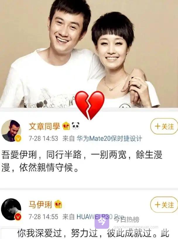 六年前,在2019年7月28日那天,文章于微博之上发了八个字,马伊琍同样在微博发了八个字,如此这般结束了长达11年的婚姻。