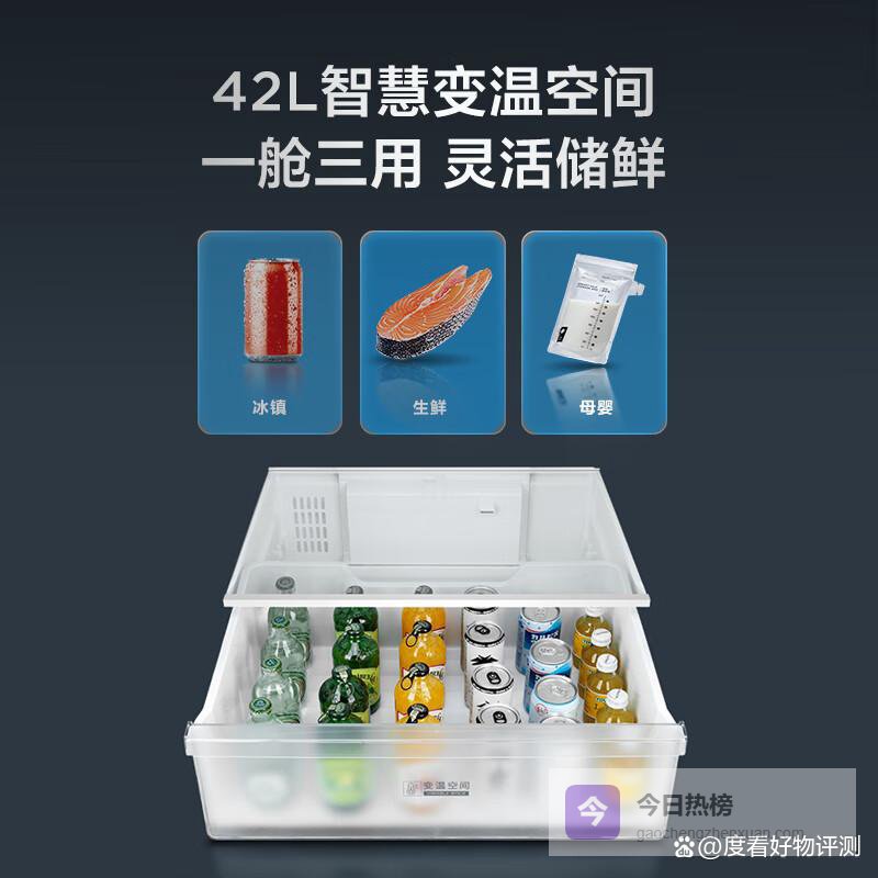 最值得一提的是其中门的宽幅变温功能。这个小空间可以在冷藏和软冷冻之间灵活切换,工作日可以当作冷藏室扩展,存放更多的饮料水果;周末采购了肉类,又可以调整为软冷冻模式,让肉类保持微冻状态,无需长时间解冻即可切割,非常灵活。对于居住空间有限、饮食结构多变的年轻用户来说,这种灵活性和实用性,远比华而不实的附加功能更有价值。