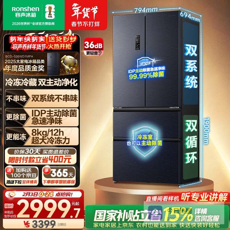 526L的超大容量配合精细的法式多门分区,让囤货变得井井有条。一级能效和风冷无霜是基础配置。它的目标用户非常明确:那些对食材新鲜度和味道纯净度有极致要求,且需要海量存储空间的家庭。从对比决策角度看,在相似价位段,搭载真正双循环系统的产品并不多,容声这款的竞争力非常突出。