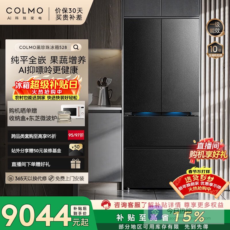 对于追求顶级品质生活,将家电视为家居艺术品和科技载体的用户,COLMO这个高端品牌提供了更高维度的选择。这款528L的黑珍珠系列冰箱,首先在外观上就极具辨识度,曜岩黑面板质感高级,纯平全嵌设计彰显隐逸美学。其核心技术“AI抑嘌呤”功能,通过特定的温度、湿度及离子环境,有效抑制海鲜、肉类等食材中嘌呤的生成,这对关注健康的都市精英,特别是痛风风险人群,具有独特的吸引力。