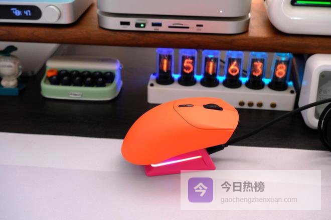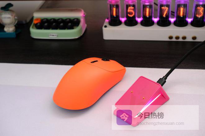 平时桌面摆得干干净净,之前用黑色鼠标总觉得沉闷,白色又怕脏,擦一次能累半天。这次入手的是雷柏VT7焰影橙电竞鼠标 P5 PLUS充电底座的组合,彻底解决鼠标用着没电的问题,这个配色也更耐脏。