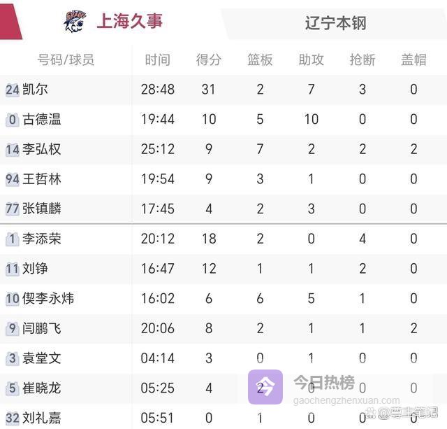 李添荣18分,刘铮12分,王哲林只打了22分钟就轻松拿下10分9篮板。替补席上闫鹏飞、罗汉琛都有稳定输出。当你的第三后卫都能在辽宁队的防守下自如突破,这支球队的进攻已经很难被限制。