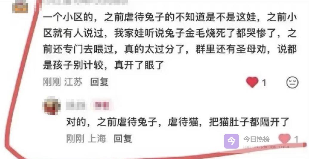 更令人毛骨悚然的是家长的教育方式嘛,要是孩子第一次虐猫的时候,家长能严肃点处理,也许兔子就不会死得那么惨。