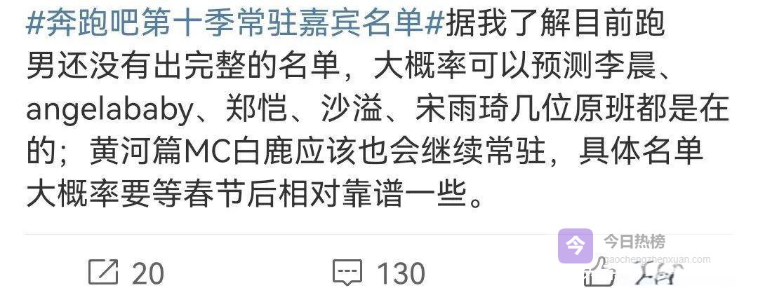 《奔跑吧兄弟》已经陪伴观众走过整整九年,从“撕名牌”到“黄河大合唱”,节目不断迭代,却始终把“户外竞技+真人秀”做得有声有色。新一年伊始,第十季录制在即,一份“拟邀常驻名单”率先在网络流传,瞬间点燃讨论:哪些熟悉面孔会回归?又有谁能带来新鲜感?