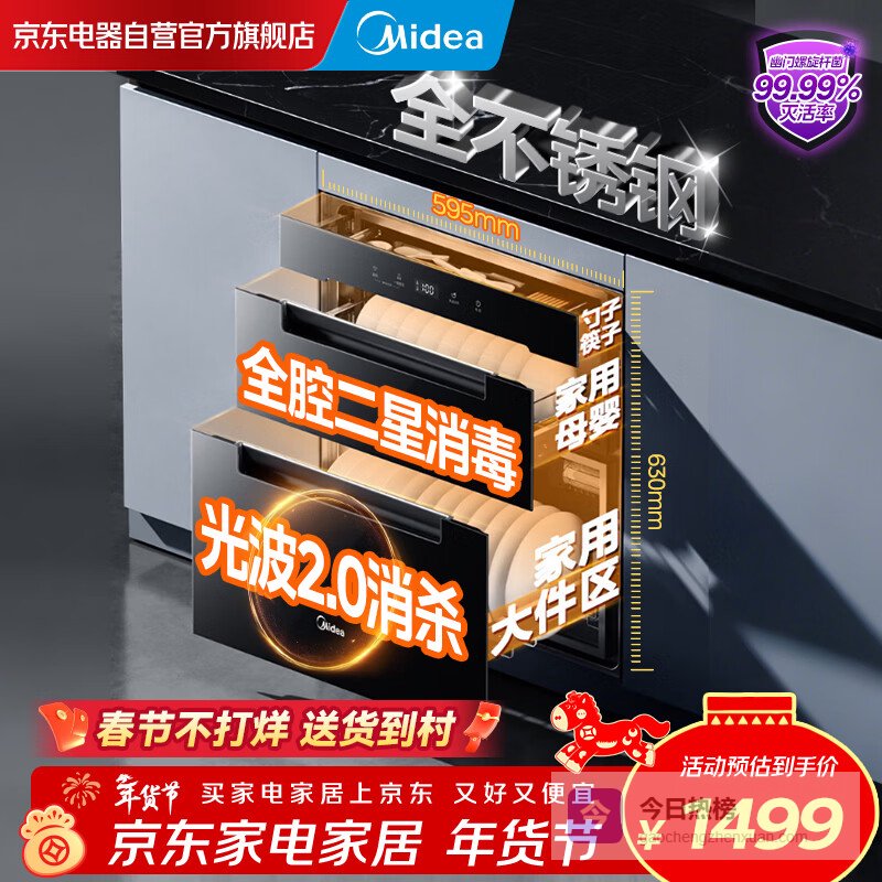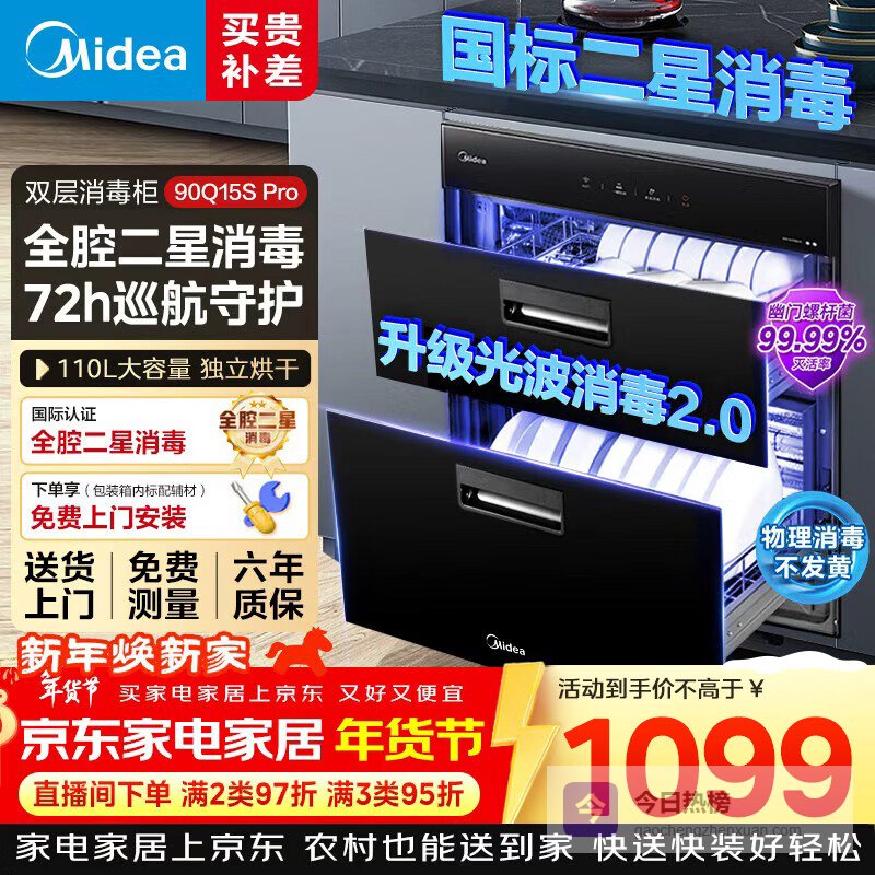 美的(Midea)消毒柜家用嵌入式 家用 光波2.0 110L双层大容量餐具碗柜碗筷 90Q15S Pro¥