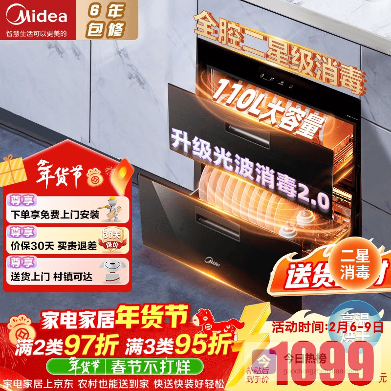 亮点:高温杀菌、二星级消毒、智能远程控制、超大容量