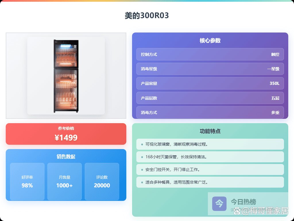 写在最后: 总之,选购美的消毒柜还是要结合自己的实际需求,多做功课,仔细比较不同型号的亮点和功能,才能选到称心如意的产品,守护家人的饮食健康。