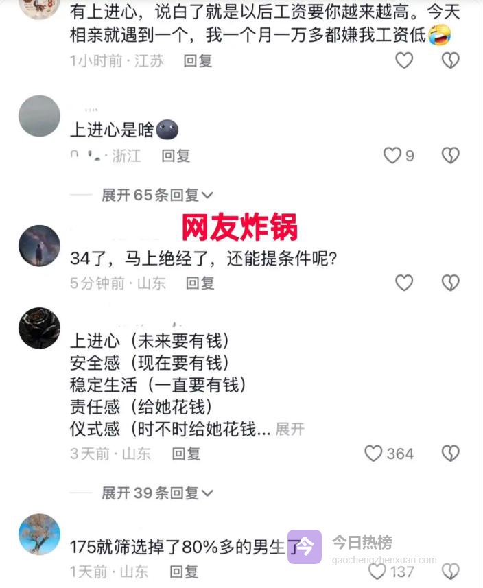 这段视频曝光后,网友瞬间炸锅,纷纷发表自己的看法。有人直言:“看这颜值和身材,怎么会没人要?说白了就是经历太多,嘴上说着要求低,其实就是想找个人接盘,心里还是不甘心罢了!”也有人调侃道:“一看就不是踏实过日子的人,被剩下也是理所当然。看你这穿衣打扮,哪有一点居家过日子的样子,先改改穿搭,再谈找对象吧!”还有人一针见血地指出问题关键:“嘴上说要上进心,说白了就是要求对方以后工资越来越高,今年一万明年两万,永远填不满你的期待,这哪里是找老公,分明是找印钞机!”其实当下的婚恋市场,男女双方都有着不小的压力。这名女子舍弃了车房、彩礼等物质条件,只要求男方有上进心,看似是做出了巨大让步,可“上进心”这个标准本就模糊不清,没有明确的界定,若是其中夹杂着隐形的物质期待,又怎能顺利脱单?宫崎骏曾言:“爱情不是找一个完美的人,而是用完美的眼光,欣赏不完美的人,一起创造完美的婚姻。”对这名女子而言,即便放下了表面的物质要求,内心却依旧执着于对方的“上进心”和未来的物质规划,说到底,还是害怕以后的物质生活没有保障。哪怕嘴上说着不要车房彩礼,骨子里却从未放弃对物质的过度渴求,这份隐藏的期待,成了她择偶路上最大的阻碍。