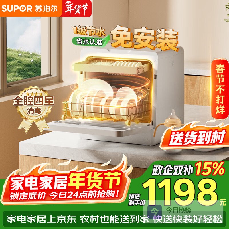 苏泊尔(SUPOR)洗碗机台式家用免安装超一级水效【升级92℃高温除菌】软水系统 洗消烘一体 WMT¥