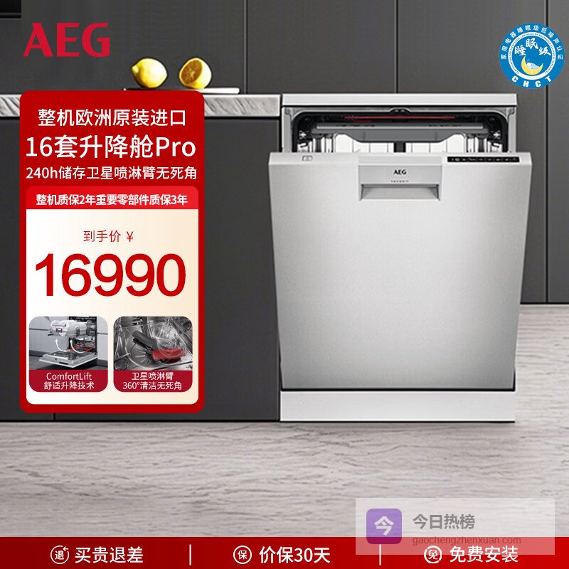 AEG洗碗机升降舱Pro16套嵌入式240h储存舒适升降碗篮FFF9692SXA¥