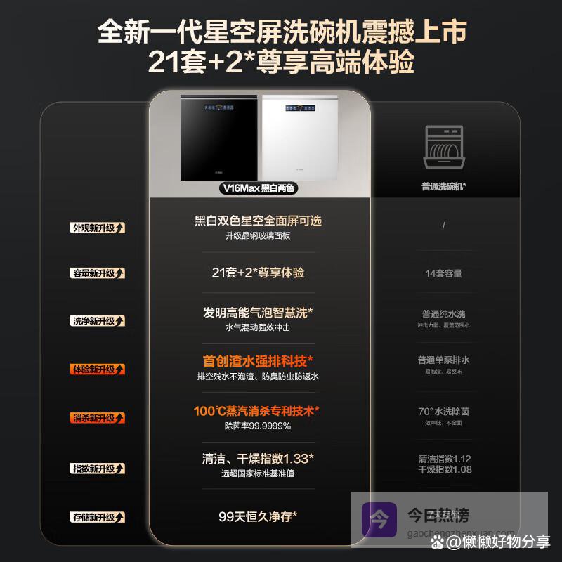 不同类型产品对比与适用人群入门级特点:价格亲民,功能基础。适用人群:预算有限,对洗碗机功能要求不高。性能级特点:清洗能力强,节能环保。适用人群:追求高品质生活,对洗碗机功能有一定要求。旗舰级特点:功能全面,智能化程度高。适用人群:追求极致体验,不介意高价格。