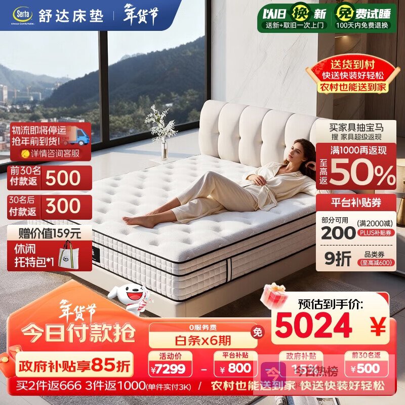 【京东自营】舒达致眠乳胶核心技术弹簧超体线下同款床垫1.8*2米适中睡感¥
