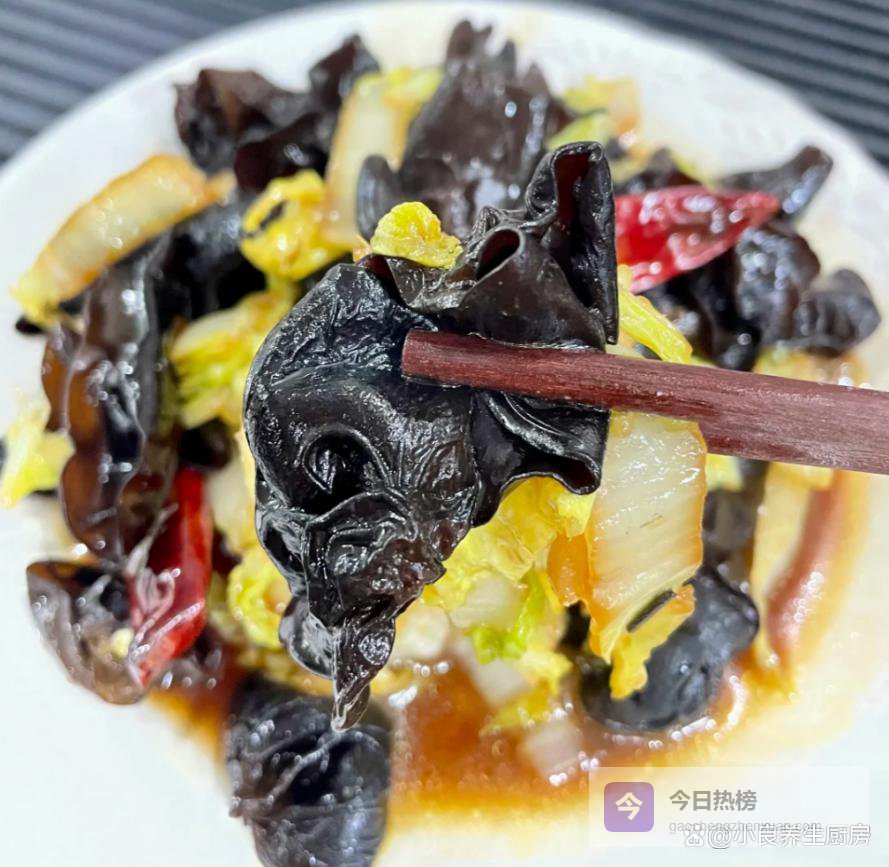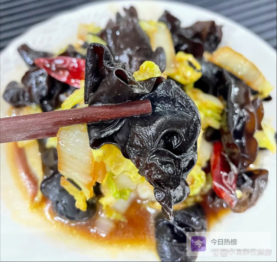 白菜别泡太久!泡久了会吸水变软,炒出来水汪汪的,不脆。木耳一定要去根!根部硬,影响口感,还可能藏沙子。炒的时候用大火!快火猛炒能锁住白菜的水分,炒出来脆嫩不出水。