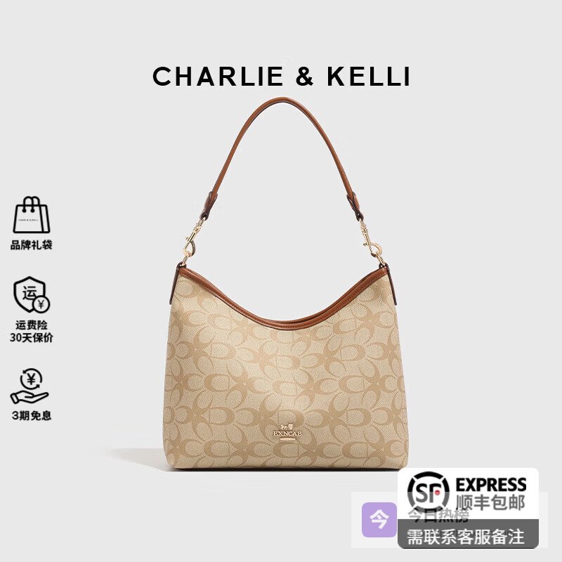 CHARLIE&KELLI CK品牌轻奢包包女包腋下托特包女款单肩斜挎包包新年情人节礼物 棕色【顺丰包邮 品牌礼袋】¥