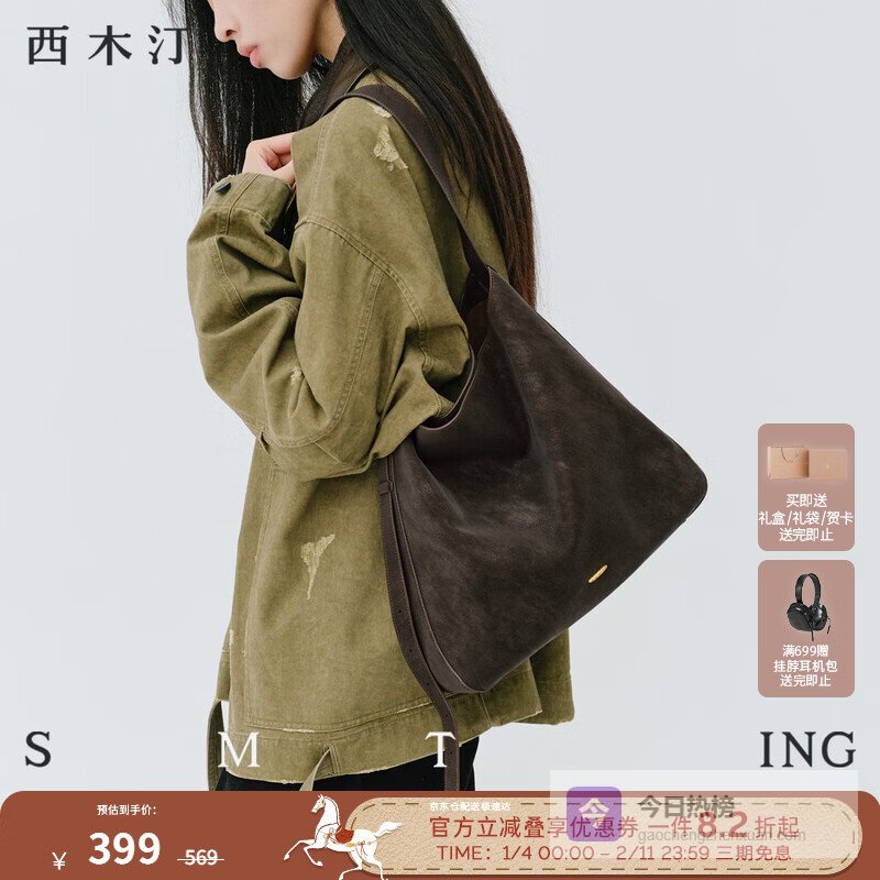 西木汀 静夜 水桶包女通勤小众单肩斜挎包轻奢腋下包 情人节 乌木色大号¥