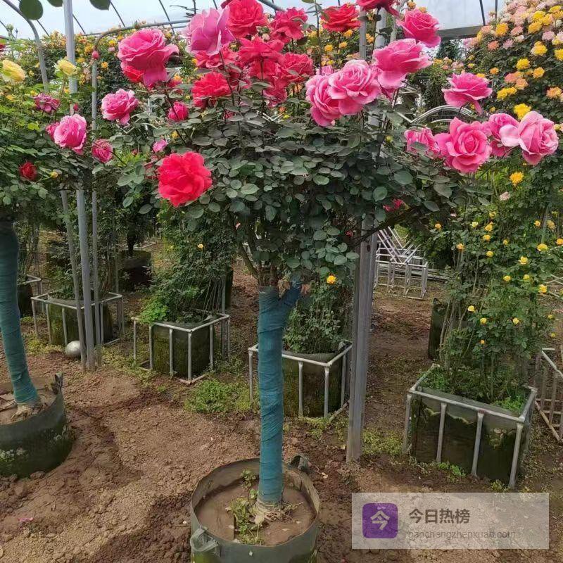老桩根系经过8-12年培育,直径达5-8cm,比普通扦插苗强壮3倍以上。特别设计的"棒棒糖"树形,让花朵集中在1.2米高度的伞状冠幅上,既避免弯腰赏花的劳累,又能形成天然的庭院遮阳伞。实测显示,其抗病性比普通月季提升60%,黑斑病、白粉病这些让园丁头疼的问题,在老桩面前根本不值一提。
