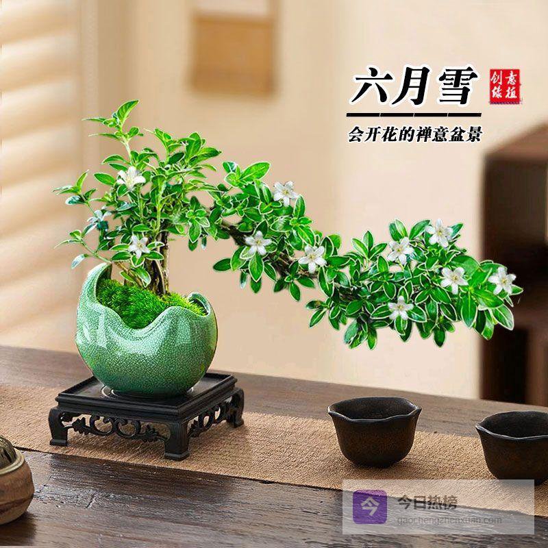 三、悬崖六月雪:桌面上的微型山水这盆自带禅意的金边六月雪,堪称拯救小空间的魔法师。老师傅用铝丝蟠扎出的悬崖造型,让枝条如瀑布般从陶瓷盆边缘倾泻而下,活脱脱一幅立体的水墨画。相比普通绿植,它的养护简单到不可思议——每周一杯水的量,散射光就能维持那抹金边始终明亮。