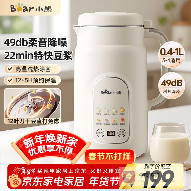 推荐入手:小熊家用豆浆机DJJ-H08C1 1升大容量