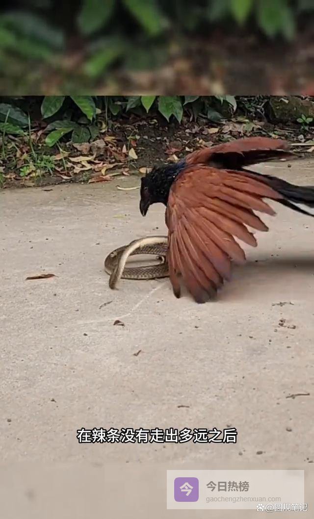 整个过程,红毛鸡的脚爪牢牢控制着蛇身。它利用体重,利用树干,利用一切地理优势。它甚至会将蛇反复摔打在硬物上。确保其彻底失去威胁。然后。从容不迫地。开始吞咽。