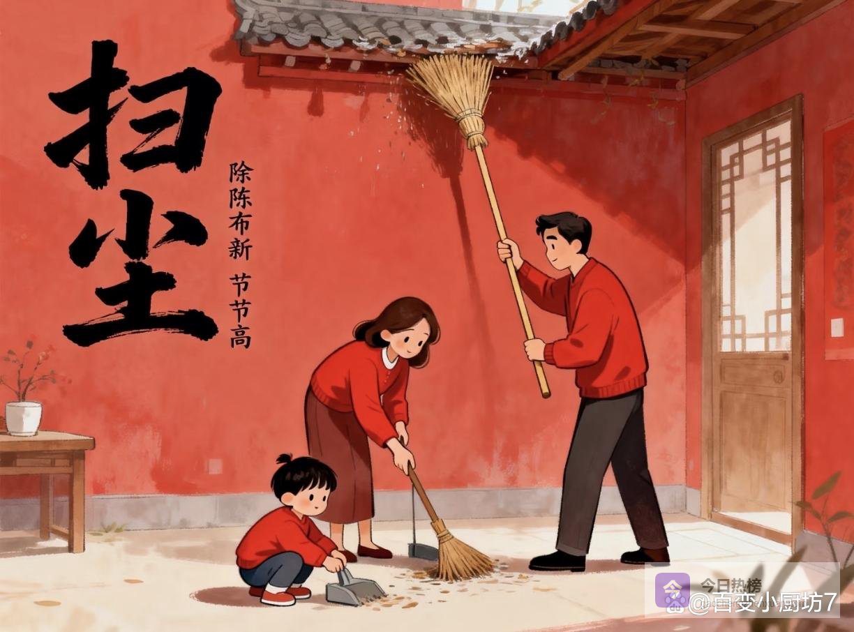 - 工具要专用:最好用竹枝扎的扫把,或者专门的扫尘扫把,别用平时扫地的小扫把,这样扫得更干净,也更有“扫尘”的感觉。