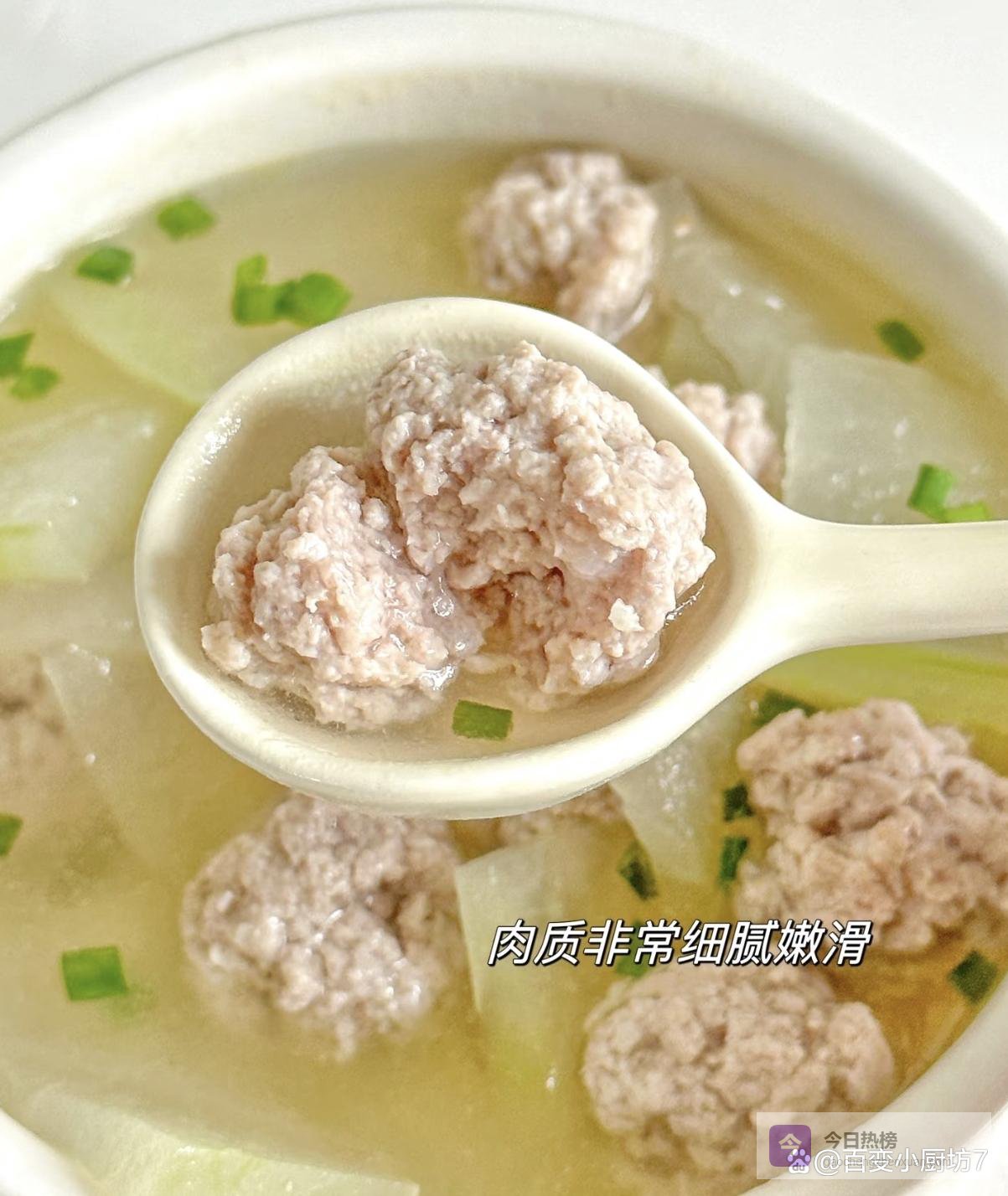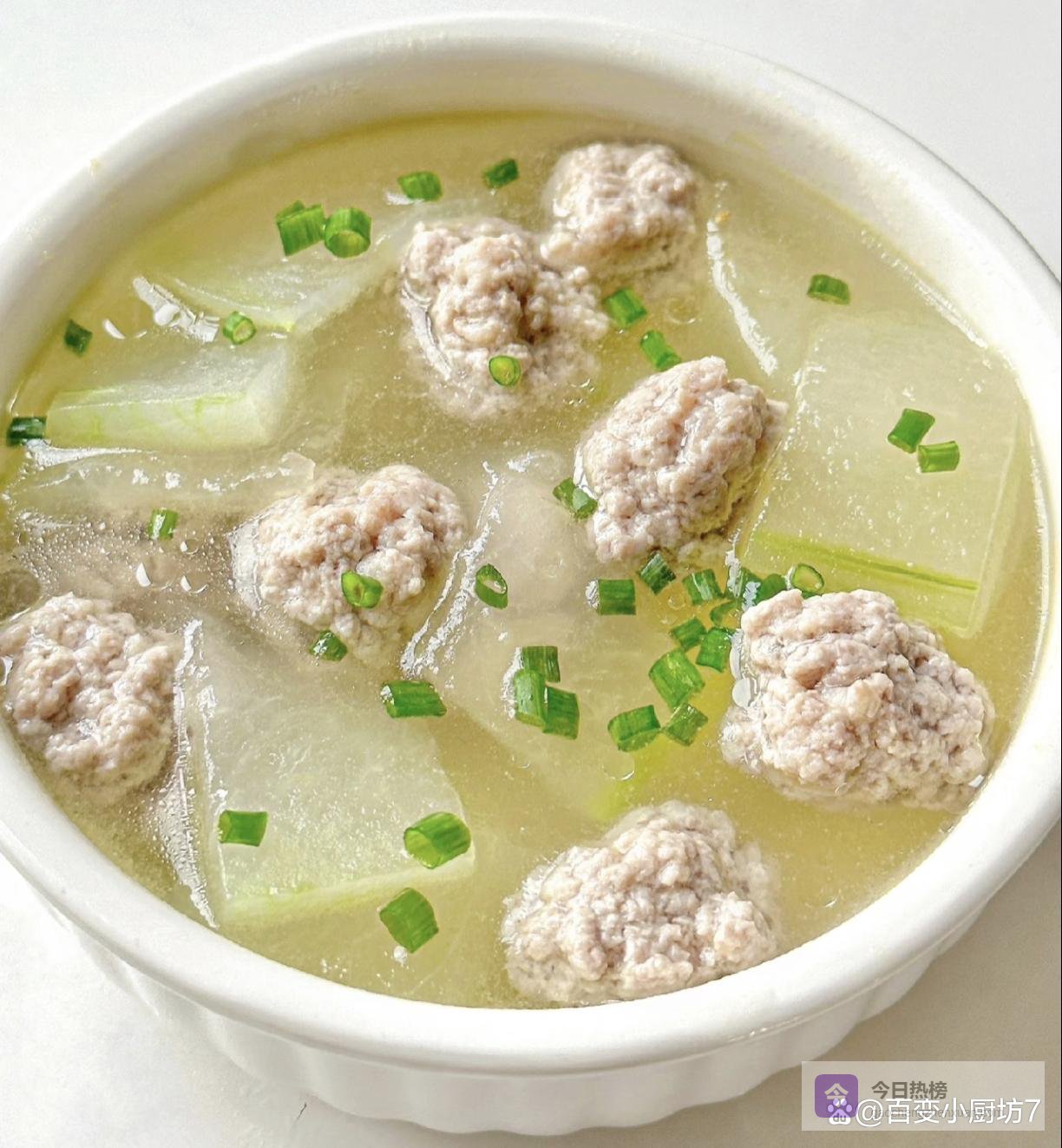 冬瓜丸子汤,汤鲜味美,丸子鲜嫩,冬瓜软烂,喝一口暖乎乎的,特别舒服。而且做法简单,老少皆宜,是腊月二十餐桌上的一道暖心汤品。