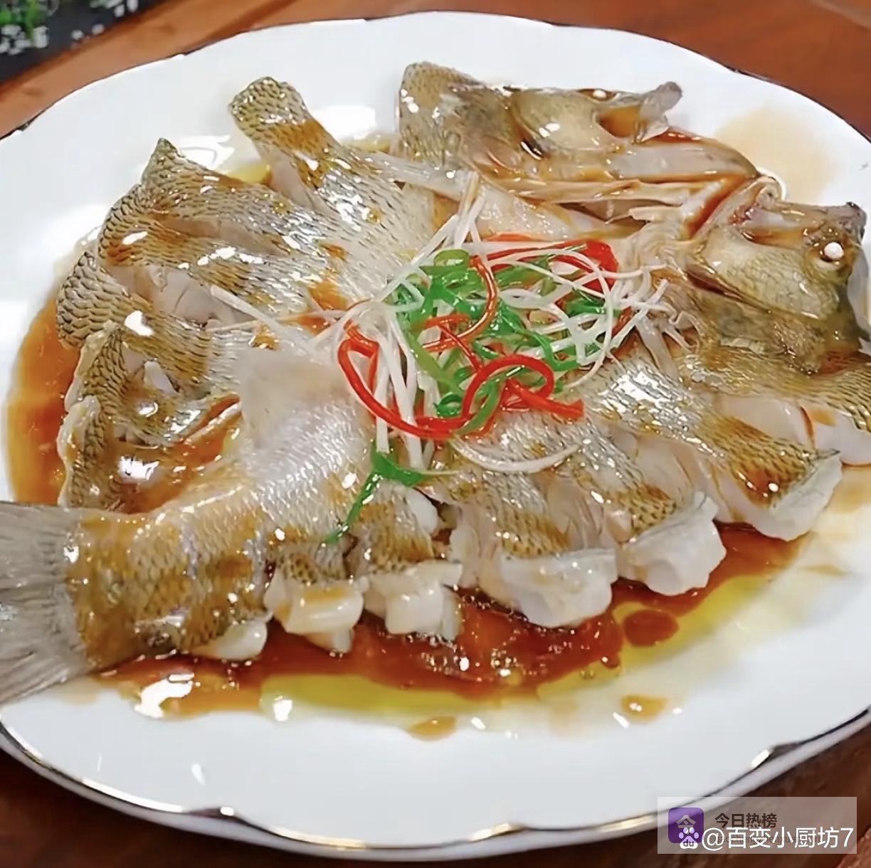 6. 淋油:在鱼身上重新铺一层葱姜丝,锅中倒油烧热,淋在葱姜丝上,激发出香味。