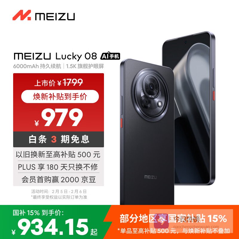 魅族(meizu)Lucky 08 AI幸运手机 12GB+256GB 陨石黑 6000mAh持久续航 1.5K旗舰护眼屏¥