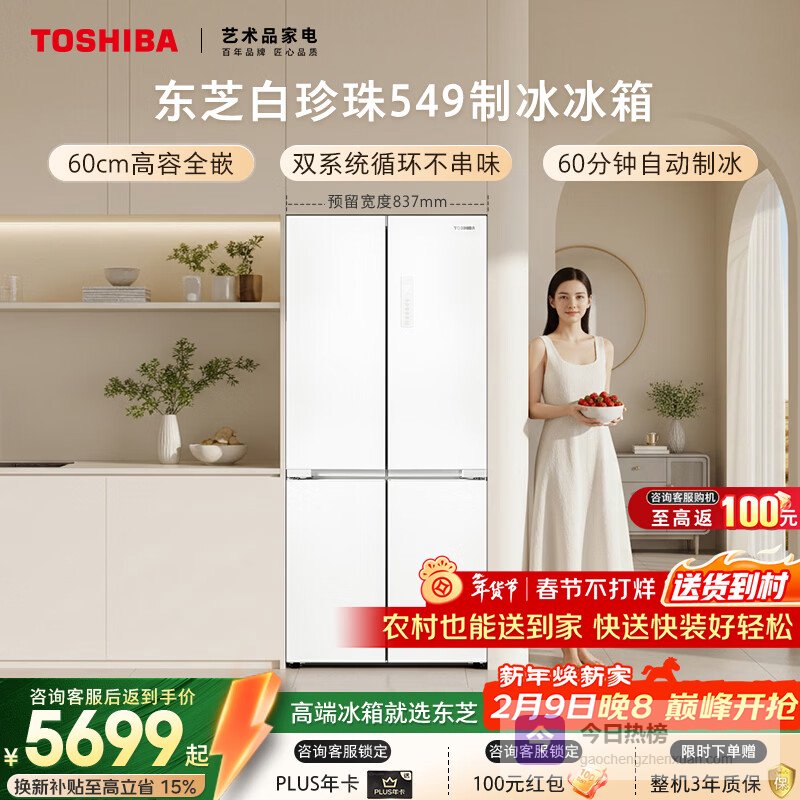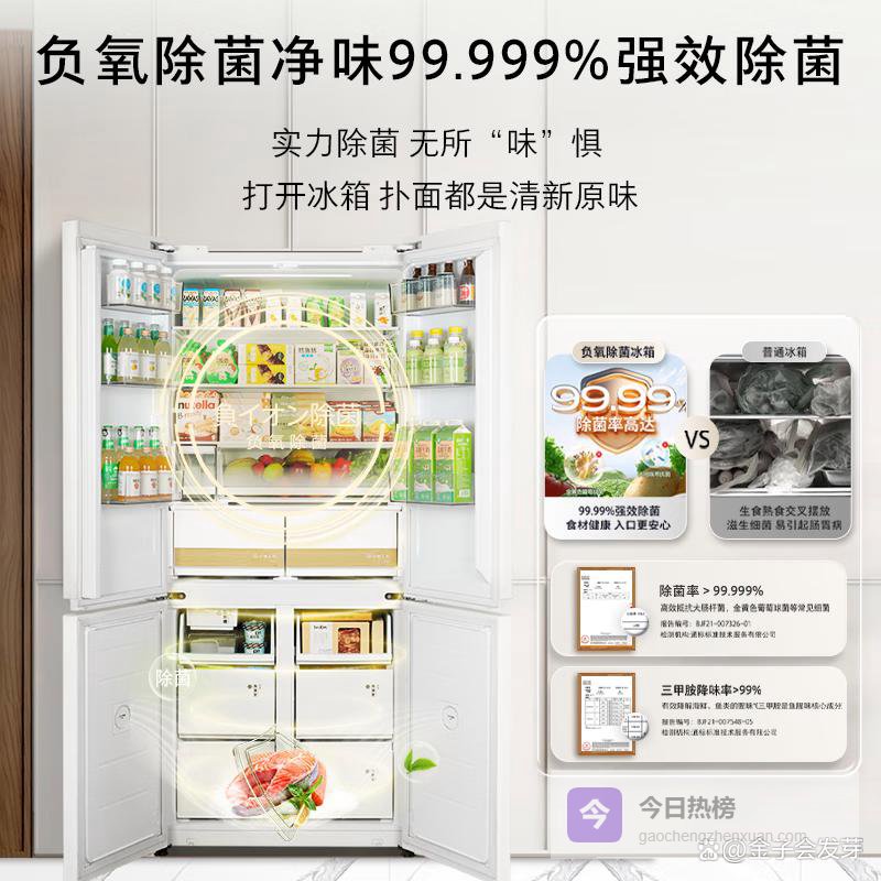 【商品推荐】4:东芝白珍珠521L十字门冰箱它搭载的是负离子主动除菌技术,不是被动吸附,而是持续释放高浓度负氧离子,主动包围并击穿细菌细胞壁。经中家院实测,对大肠杆菌、金黄色葡萄球菌等灭活率达99.999%,且持续作用不衰减。打开冰箱那一刻,闻不到任何闷味或酸腐气,只有食材本真的清冽感。