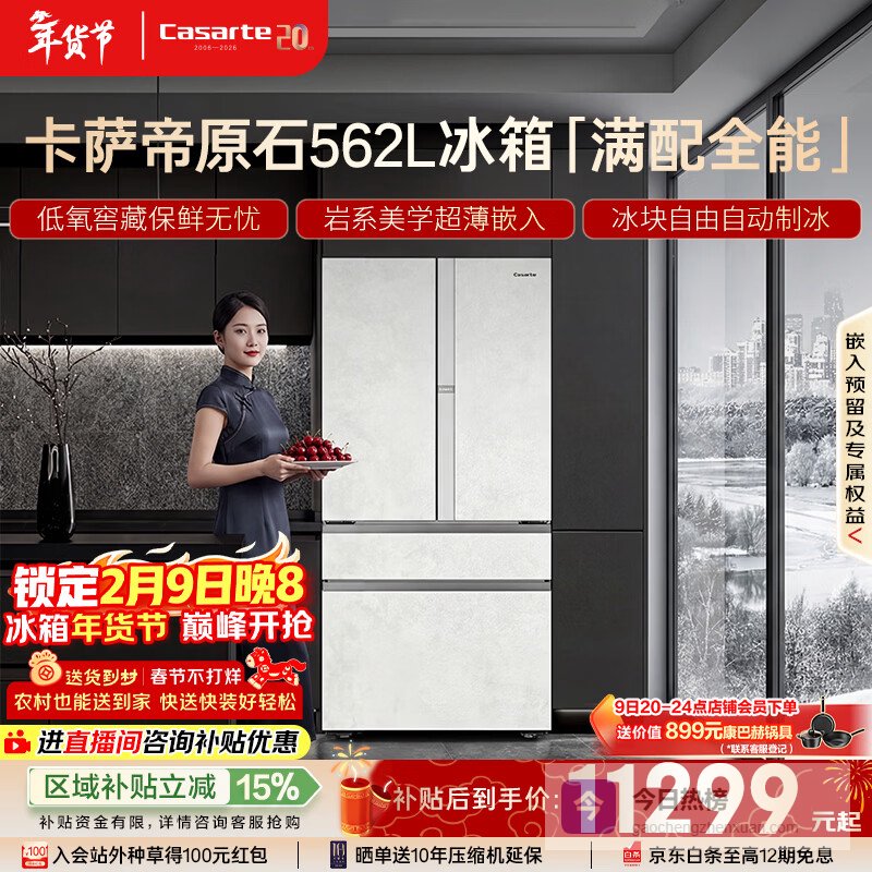 卡萨帝(Casarte)原石562L法式多门冰箱594MM超薄零嵌自动制冰MRAPlus低氧窖藏囤年货BCD-562WGCFDM4DUU1 561同款¥