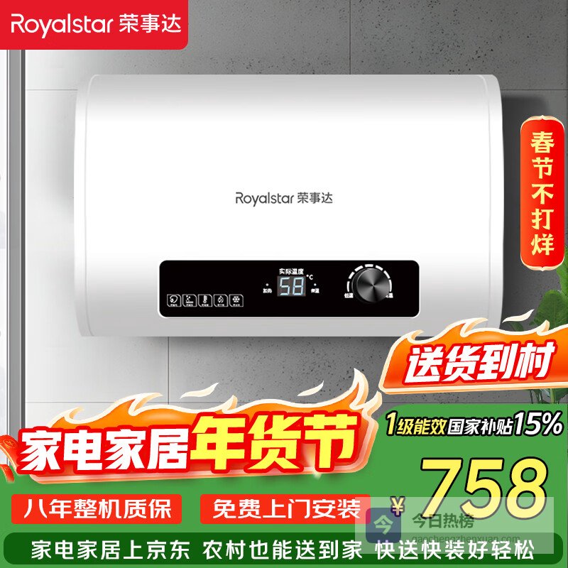 荣事达(Royalstar)80升电热水器扁桶2200W超薄双胆速热家用储水式小户型一级能效节能省电国家补贴 RSD-F22-PS80¥