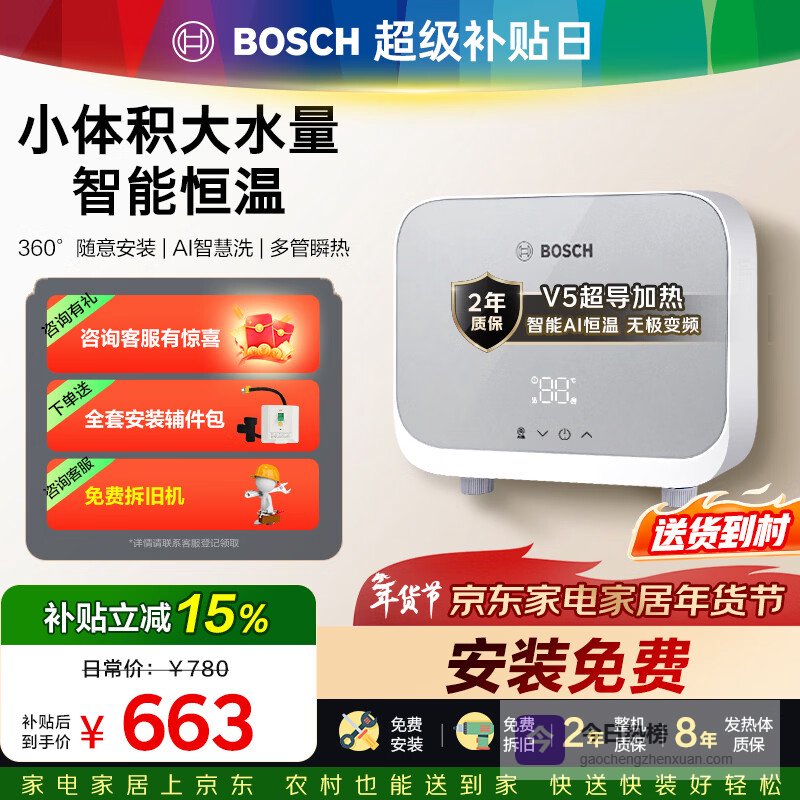 博世(BOSCH)【补贴15%】1秒即热小厨宝 迷你电热水器 无极变频速热智能恒温 德国博世 BHIK-55B¥