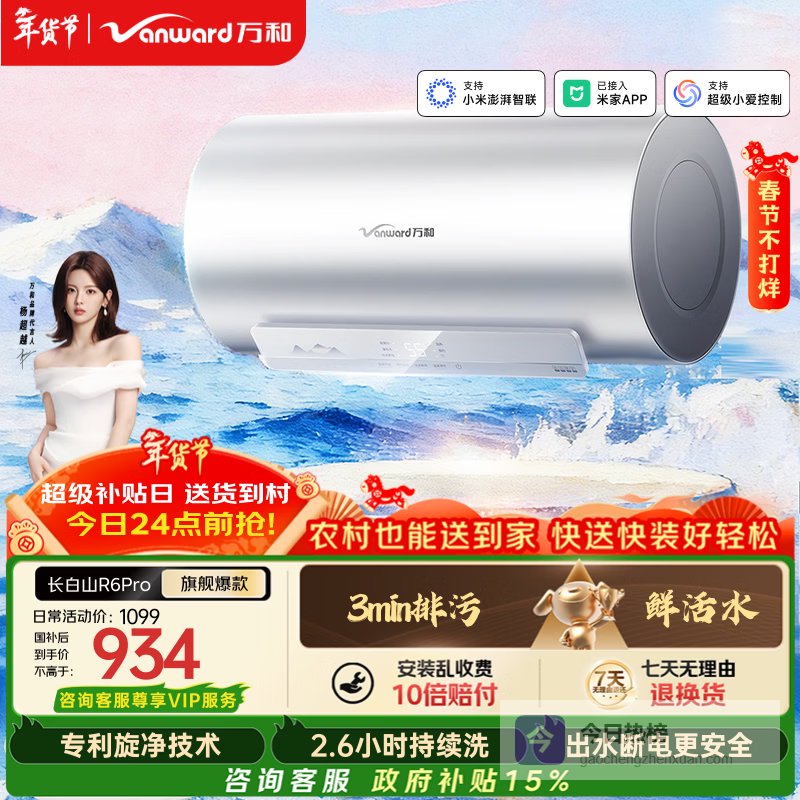 万和【长白山R6Pro】60升活水洗3300W变频速热出水断电终身免换镁棒电热水器国家补贴15%¥