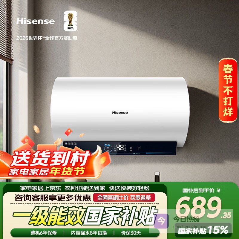 海信(Hisense)50升家用电热水器3200W变频省电节能免换镁棒以旧换新一级能效安全双防ES50-DYJ3国家补贴15%¥