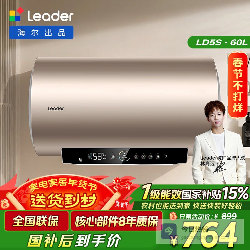 海尔出品统帅60升电热水器京东自营上门安装国家补贴2200W节能速热一级能效家用储水式LEC6001-LD5S¥