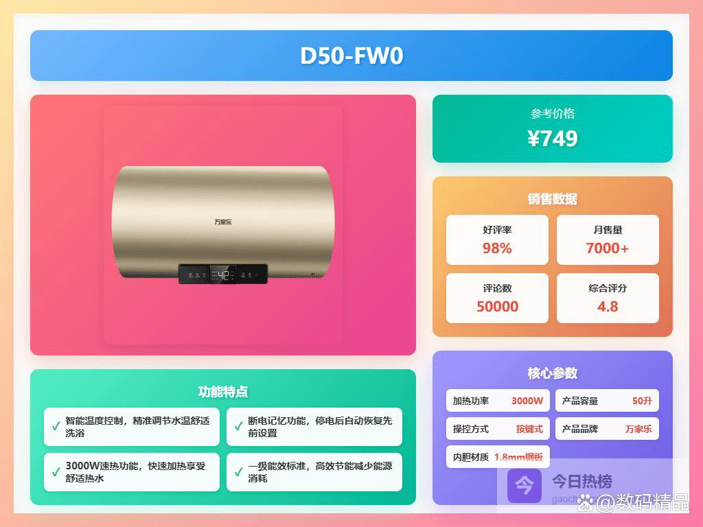 七、万家乐① 安全断电技术:这款万家乐电热水器采用出水断电设计,确保每次洗澡时都会自动断电,用得更安心,不用担心漏电或意外触电的问题。