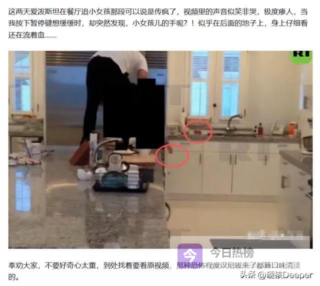 他楞把厨房追逐戏,说成了剁手现场,又是形容血迹又是形容恐怖程度的,纯粹博人眼球,虽然这场追逐戏依然成为打开萝莉岛恐怖世界的一扇窗,但是这只是个窗,有人把这个窗当成事件结局去写了,就为了赚点那流量钱,实际上桌子上是酒,那所谓的胳膊其实是个装酒的东西,所以在这个视频里不光是打了黑影,其实还对其中一处音频做了遮蔽处理,那处音频女孩的声音是“I”字开头的,所以说的根本就不是救命之类的,也就是说,不管女孩在说什么,一定是对“杜撰的恐怖”这一层面不利的,屏蔽掉了,就不让你听见真相了,那么就好编了,不是吗?