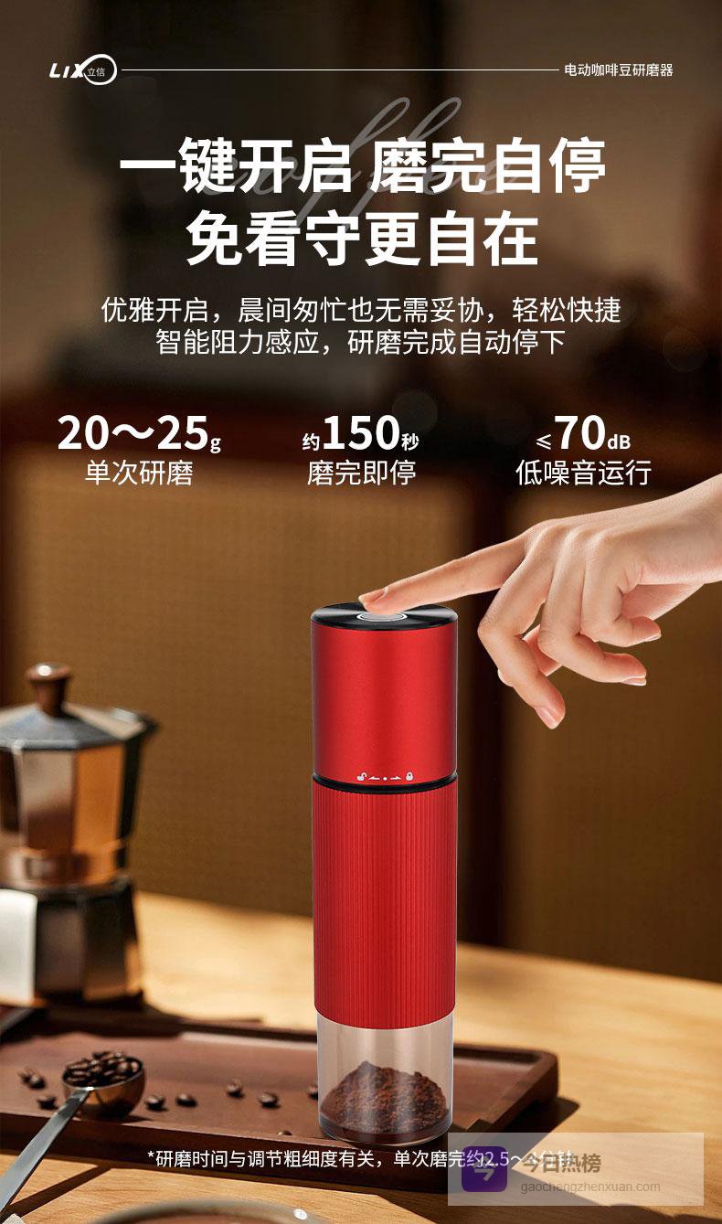 立信 电动咖啡豆研磨机,一键全自动研磨,现磨现冲,把专业级醇香轻松握在手中!