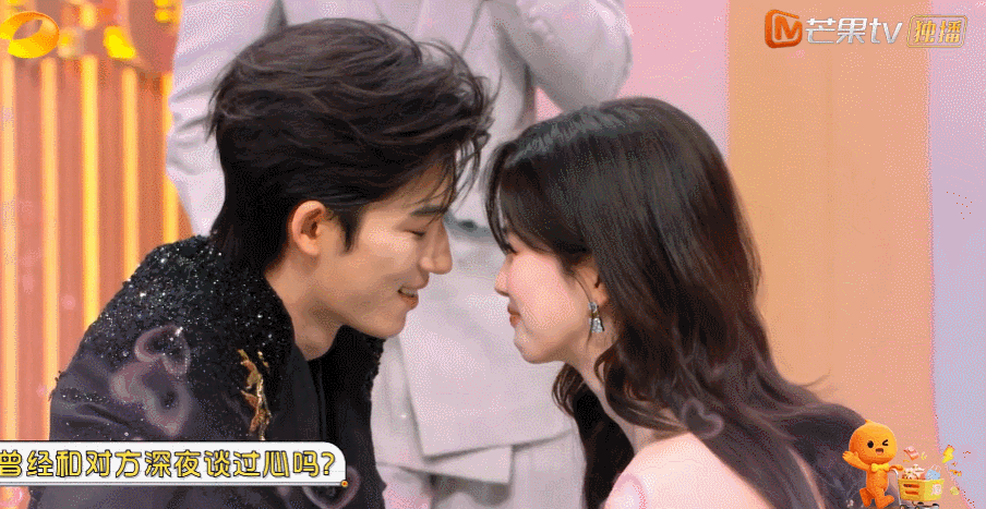 那个鼻尖对鼻尖的游戏环节,简直就是为他们量身定做的。距离近到能感受到彼此的呼吸,王星越那种想靠近又克制的模样,活像个初恋男孩。他内心的波澜,全写在脸上。