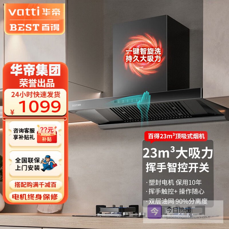 【品牌直营】百得华帝出品欧式顶吸抽排油烟机家用T型23立方大吸力脱排以旧换新一级能效自动清洗智旋洗2¥