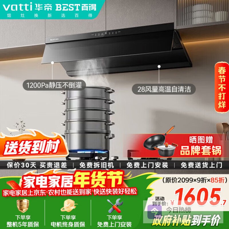 【京东自营】百得【华帝出品】E652顶侧双吸26风量变频油烟机自清洁挥手感应烟灶联动¥