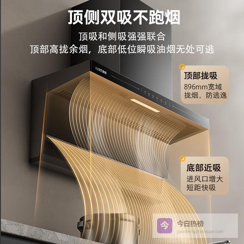 顶侧双吸设计:全面捕捉油烟,无角落死角,让空气清新又畅快。