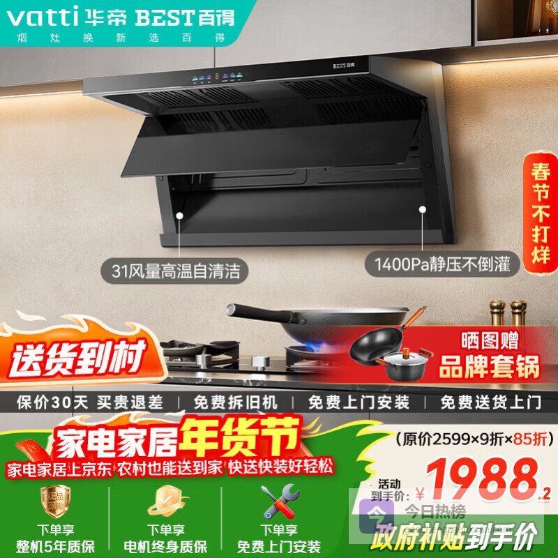 【京东自营】百得【华帝出品】ED802顶侧双吸31风量变频油烟机自清洁挥手感应智能巡航【旗舰顶配】¥
