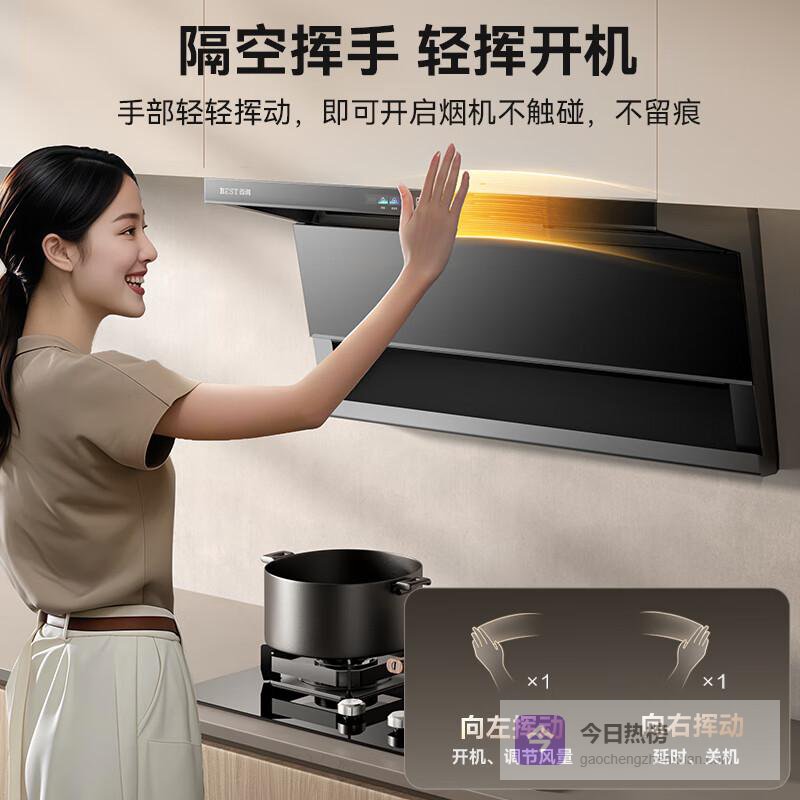 手势感应,操作更简单:轻松挥手操控,无需触碰,便捷使用,无油污烦恼。
