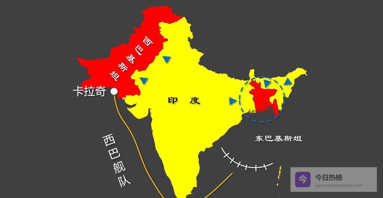 东巴基斯坦一宣布独立,巴基斯坦的整体战略格局也彻底变了模样。失去了东翼之后,巴基斯坦的领土被印度洋一分为二,东西两部分之间的联系变得异常脆弱,国家实力也大打折扣。而相对应的,印度则摆脱了背靠背受敌的烦恼,地理环境明显好转。